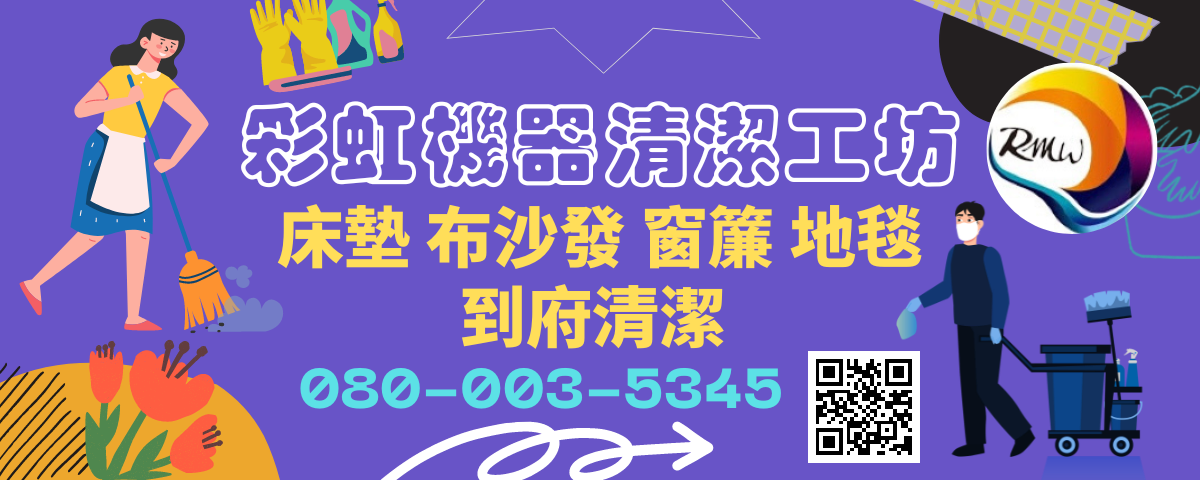 彩虹機器清潔工坊是清洗家具布料的專家,專注於洗床墊、洗布沙發、洗布座椅、洗窗簾、洗地毯,針對床墊、布沙發、布座椅、地毯上頭的污漬、汗垢、尿味、血漬清除等等......我們皆有專用的清潔洗劑可以處理。當然,濕洗之前一定要先把床墊上的塵土移除,所以先除塵螨乾處理,再使用水和洗劑的濕處理才是我們的完整清洗床墊流程。窗簾的部分,我們主要是洗窗簾上的灰塵,不須拆卸,使用國外進口的水循環回流機器到府現場清洗,不亂噴濺。